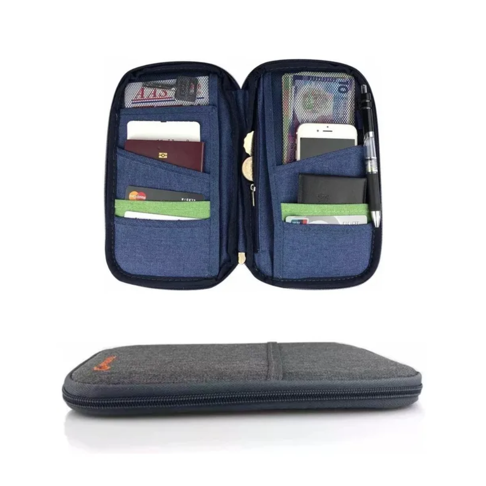 Guardá pasaporte, tarjetas, boletos y documentos esenciales en un solo lugar. Disfrutá tus viajes sin preocuparte por el desorden.