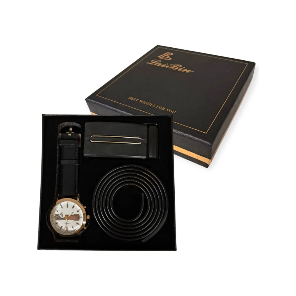Eleva tu estilo con este conjunto ideal para el hombre moderno, que combina funcionalidad y elegancia. Este set incluye un reloj distintivo, Cinturon Con Hevilla. Fabricados con materiales de calidad.