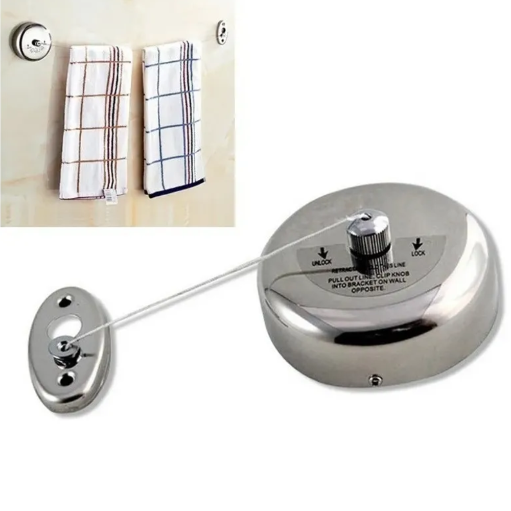 Tendedero retráctil ideal para colgar ropa húmeda o seca en interiores o exteriores. Con un cordón de 2.8 metros es perfecto para patio, balcón, terraza, baño o lavandería.