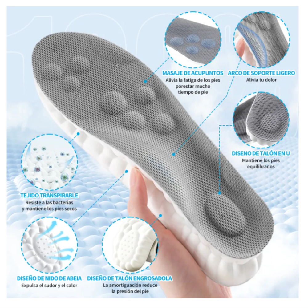 Si pasás horas de pie, entrenás o sufrís dolor en los pies, estas plantillas ortopédicas deportivas 4D son tu mejor aliado. Diseñadas con espuma viscoelástica de alta densidad, ofrecen soporte avanzado, alivio inmediato y amortiguación de alto rendimiento.